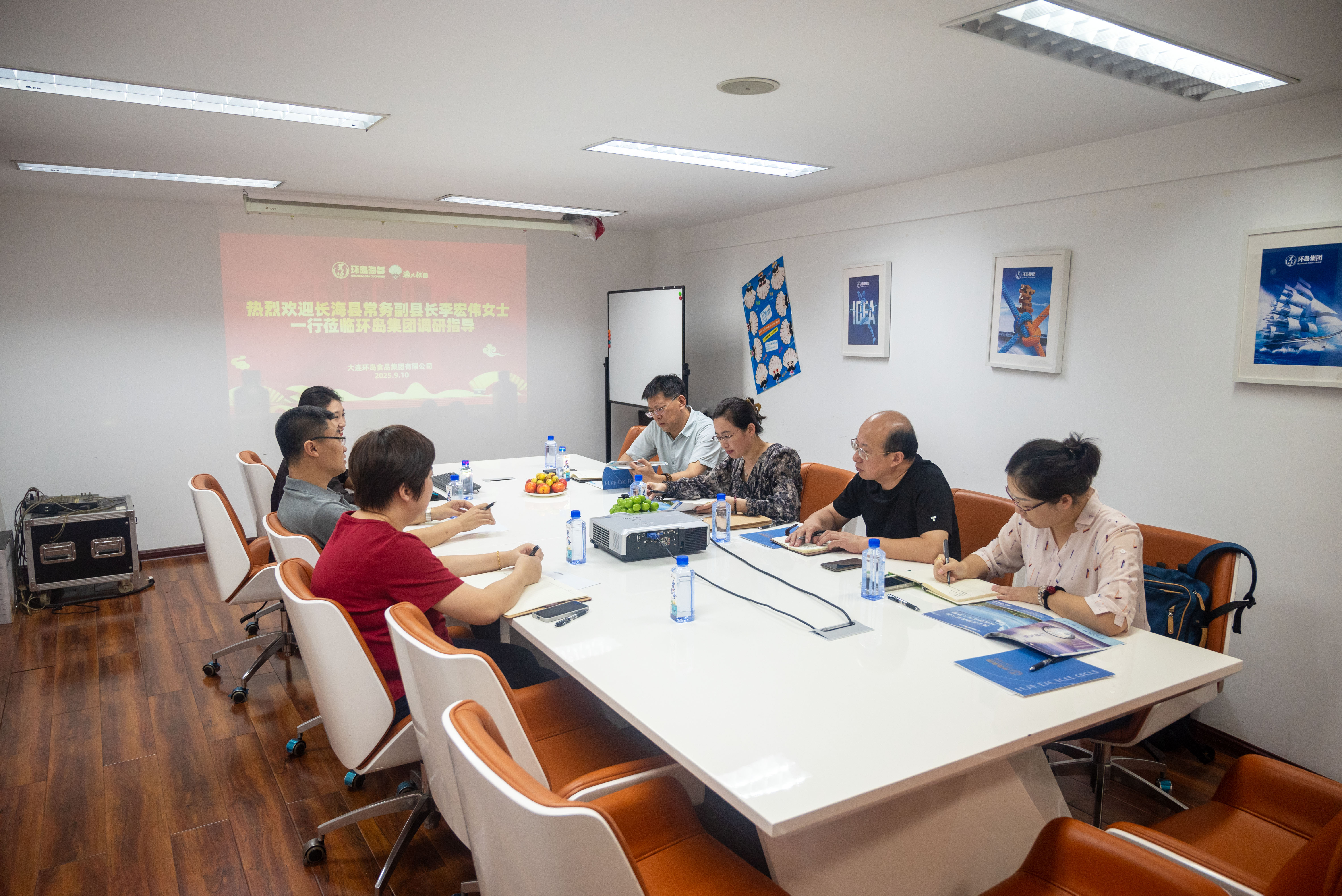 9月10日,長(zhǎng)??h常務(wù)副縣長(zhǎng)李宏偉 攜縣發(fā)改局、商務(wù)局、統(tǒng)計(jì)局等部門(mén)領(lǐng)導(dǎo) 蒞臨環(huán)島集團(tuán)調(diào)研指導(dǎo) 調(diào)研組詳細(xì)了解企業(yè)在海參、海鮮零食、預(yù)制菜等方面的發(fā)展情況。座談會(huì)上,王振東董事長(zhǎng)匯報(bào)了企業(yè)發(fā)展現(xiàn)狀與規(guī)劃。 李宏偉副縣長(zhǎng)對(duì)環(huán)島集團(tuán)在推動(dòng)地方海洋產(chǎn)業(yè)發(fā)展中的作用表示肯定,并表示政府將持續(xù)營(yíng)造良好發(fā)展環(huán)境,助力企業(yè)做優(yōu)做強(qiáng)。 環(huán)島集團(tuán)將不負(fù)厚望,致力于打
